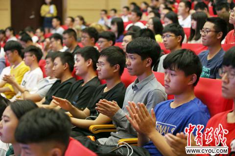 9月17日,北京航空航天大学,听宣讲报告的大学生鼓掌。