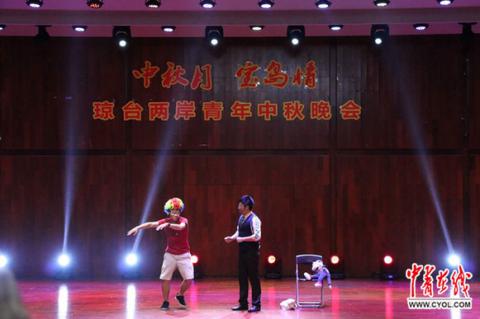 中青在线讯(实习生 雷走宏 中国青年报·中青在线记者 任明超)9月18日晚,第十二届两岸青年中秋联欢晚会在海口举行,晚会是为期7天的两岸青年联欢活动的重要一环,两岸青年各派艺术代表团为现场观众奉献精彩文艺节目。