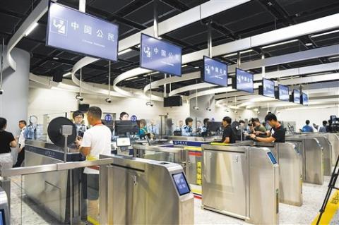 上图 9月23日拍摄的香港西九龙站“一地两检”通关口。
