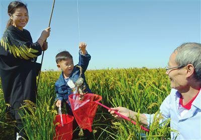 北辰区西堤头镇在东赵庄村举办歌舞表演和钓稻田蟹、摸鱼等比赛活动。