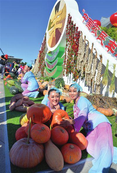 昨天,我市庆祝首届“中国农民丰收节”系列活动在蓟州区拉开帷幕。 图为村民在丰收的果实前留影。
