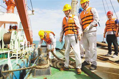 绞吸船三副宋杨正在操作台上操作甲板机械。“现在绞吸船的工作速度大概是每小时3500立方米,相当于每小时抽出70个集装箱的海底泥沙。”宋杨说,绞吸船每天可工作20个小时,在业内被称为“填海神器”。