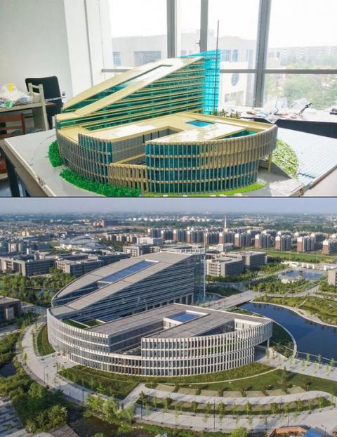 这个高度仿真的图书馆沙盘,还原了该校长安校区图书馆,不仅设计制作出了阳光下的光影效果,还有夜间灯光效果。